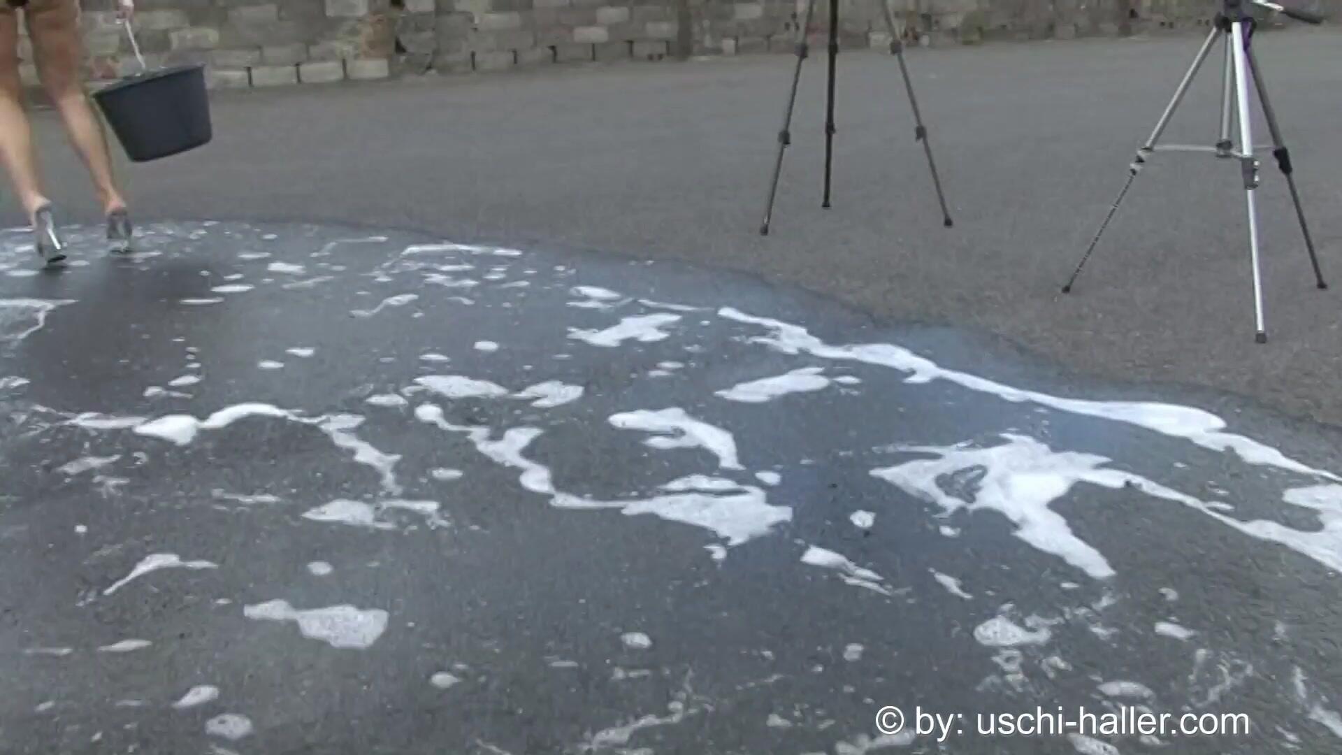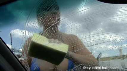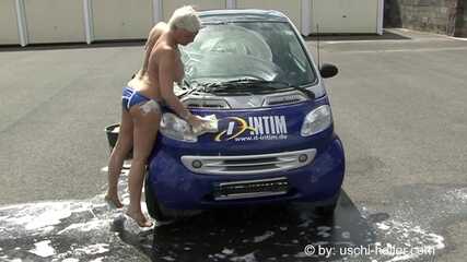 Jill washes the cinema girls' car with her tits out. The girls use this vehicle to drive to German sex cinemas to fuck.